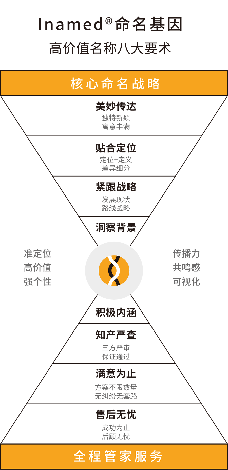 根據目標群體需求特征以及品牌起名定位,通過字義、字音、字性等多種方法,創意命名方案;對名稱進行商標注冊系統篩查等。